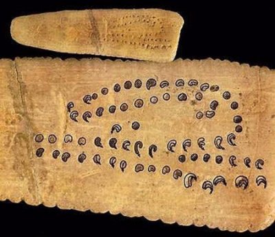 Alexander Marshank published research towards the end of the 20th century which showed the deep mathematical and astronomical knowledge in Europe during what’s known as the Aurignacian culture, 40,000 to 28,000 years ago. He found that sets of differing thicknesses on crescents or lines carved into animal bones and on cave walls, and laid out in a serpentine pattern, were records of the cycles of the Moon.