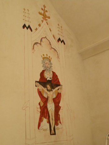 * By the way, the wall mural of the crucifixion in St Patrick’s Chapel is relatively new from when the chapel was restored a few years ago. I’m trying to find out from the artist, Fleur Kelly, from where she got her inspiration and whether or not she was restoring a similar picture that lay underneath it.