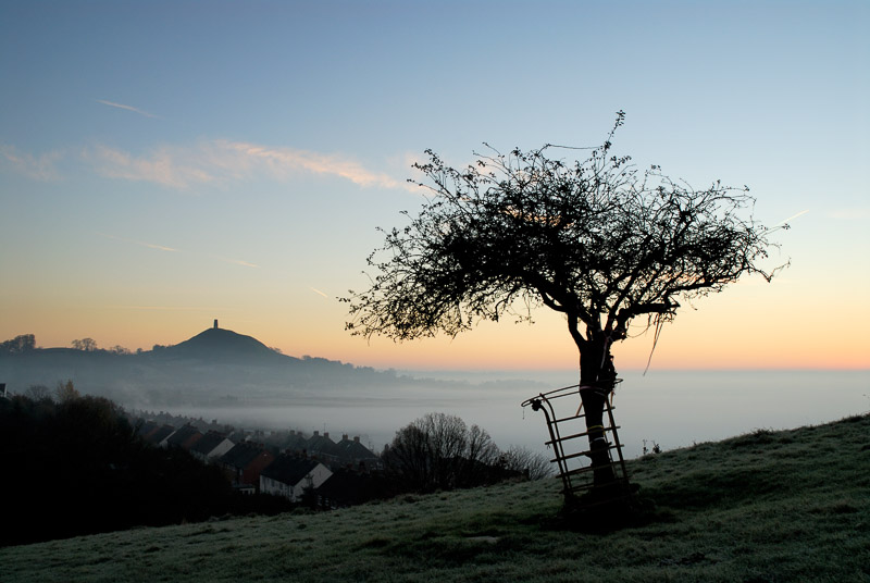 If you are driving towards Glastonbury from Wells, the Tor first appears on the left just as you are leaving the village of Coxley. It seems to be sailing fast towards you like a great ship, its funnel shaped by the ruined tower on its summit and white, fluffy puffs of steam by the clouds.