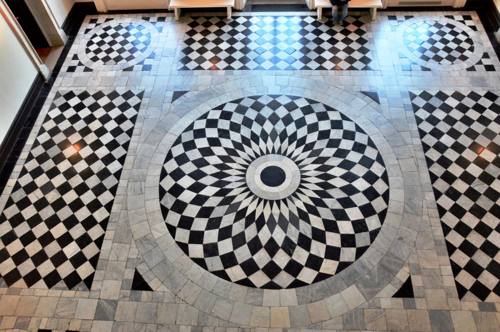 I’ve been realising recently that the design of the chequerboard floor of the Freemasonic lodge does not consist of black and white squares but black and white diamonds. You just have to skew it slightly to see this. It was confirmed to me yesterday when a dowser friend sent me a photo of the design on the floor of the Great Hall in the Queen’s House, Greenwich, London, adjacent to where the prime time meridian is set.