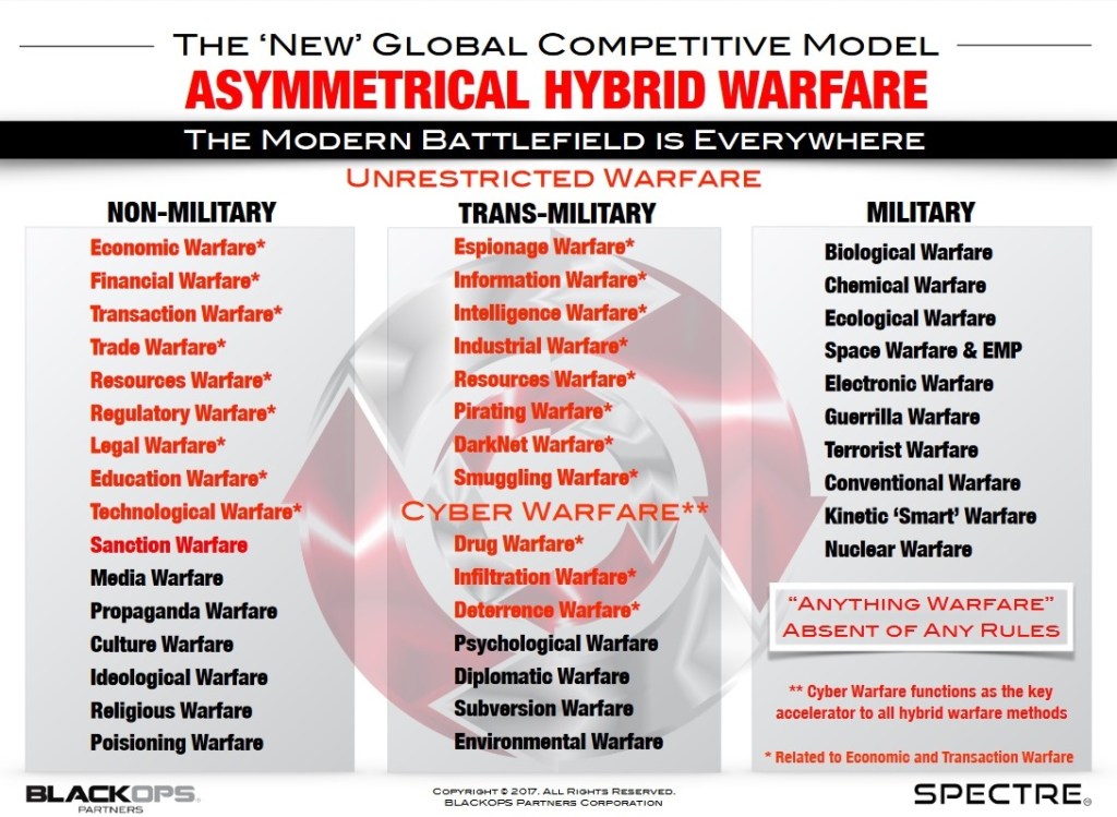 I’m not just talking about military warfare, though. We are all under attack in so many different ways, these days, in what is known as Assymetric Hybrid Warfare, in which there is no division between soldiers and civilians anymore.