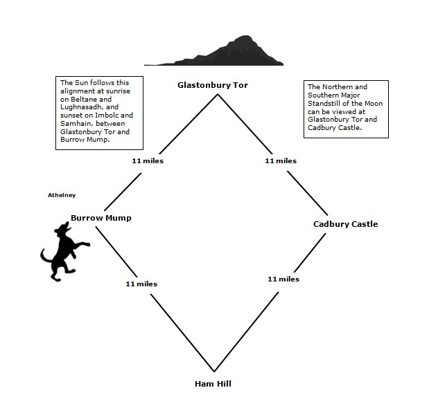 The St Michael line’s ultimate destination is the east coast of England but after Burrow Mump, the next place it visits is Glastonbury Tor, and this creates a part of the sacred Diamond of Avalon.