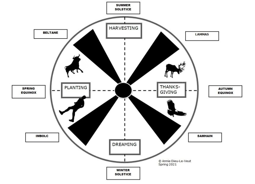 Be that as it may, I’ve created the above diagram that I call the Windmill of the Year. I don’t think they called it that, but I think it’s a good name for a blueprint or template that when followed correctly, creates abundant harvests. The druids could predict the weather such a long way ahead, and thus know when the crops should be brought in earlier, by observing the direction of the winds on the solstices and equinoxes. The direction of the wind on the Winter Solstice really sets the scene for whole rest of the year. However, on top of that, they fine-tuned and adjusted their forecasts by observing the state of play at the Spring Equinox, Summer Solstice and the Autumn Equinox, on the cross-quarter days such as Beltane, Lammas, Samhain and Imbolc and also on what are now known as saints’ days.