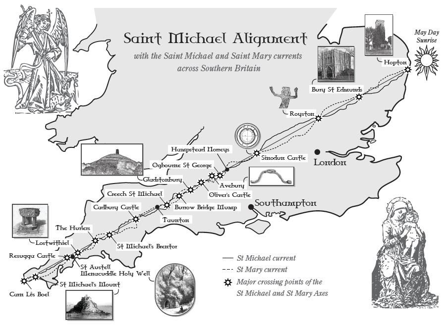 But first you need to know, if you don’t already, that there is a dragon line, known today as the St Michael line, that passes through the summit of Glastonbury Tor on its way up from Lands End in Cornwall, and on to the east coast of Britain. There is also a continuous line of rivers, brooks and streams that wind their way around the St Michael line, and that is referred to as the St Mary line.
