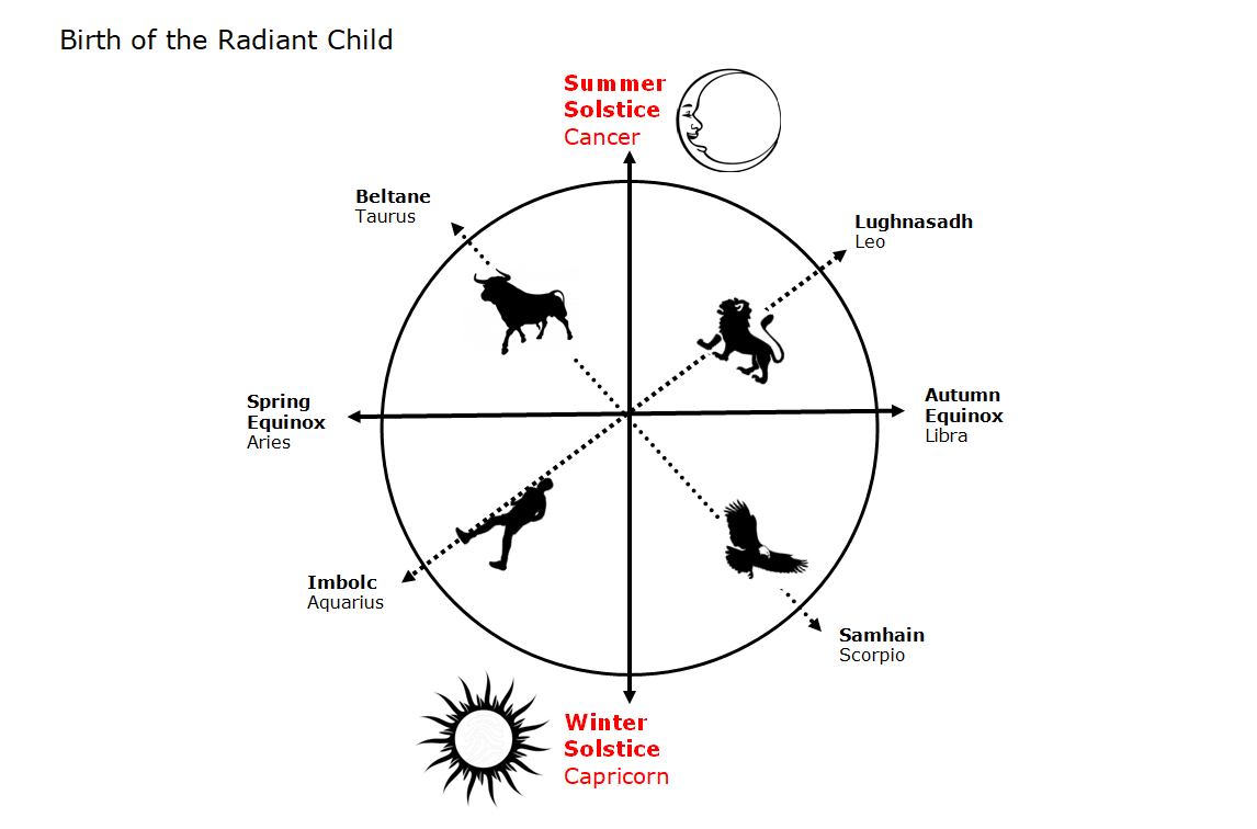 The oldest Christmas Nativity story in the world begins, at Beltane, in May, when the Sun is in Taurus and the Moon is in Scorpio, with the Honeymoon of Gods – Virgo and Ophiuchus – to conceive the Radiant Child.