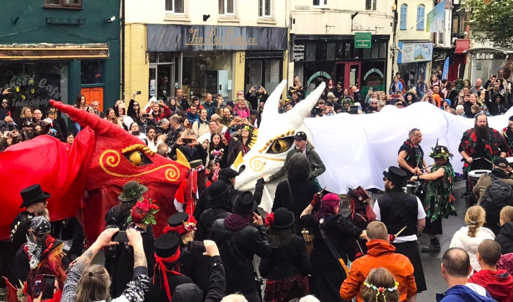 It is no mere empty custom that every Christmas, the King is sent a sprig of may blossoms from the Holy Thorn that grows here. Neither is it a meaningless pageant that on Beltane and Samhain, the duel over the hand of the Queen of the May is celebrated by drumming and piping crowds escorting carved red and white dragons up the High Street, and then along the lovage-lined lanes to Glastonbury Tor.