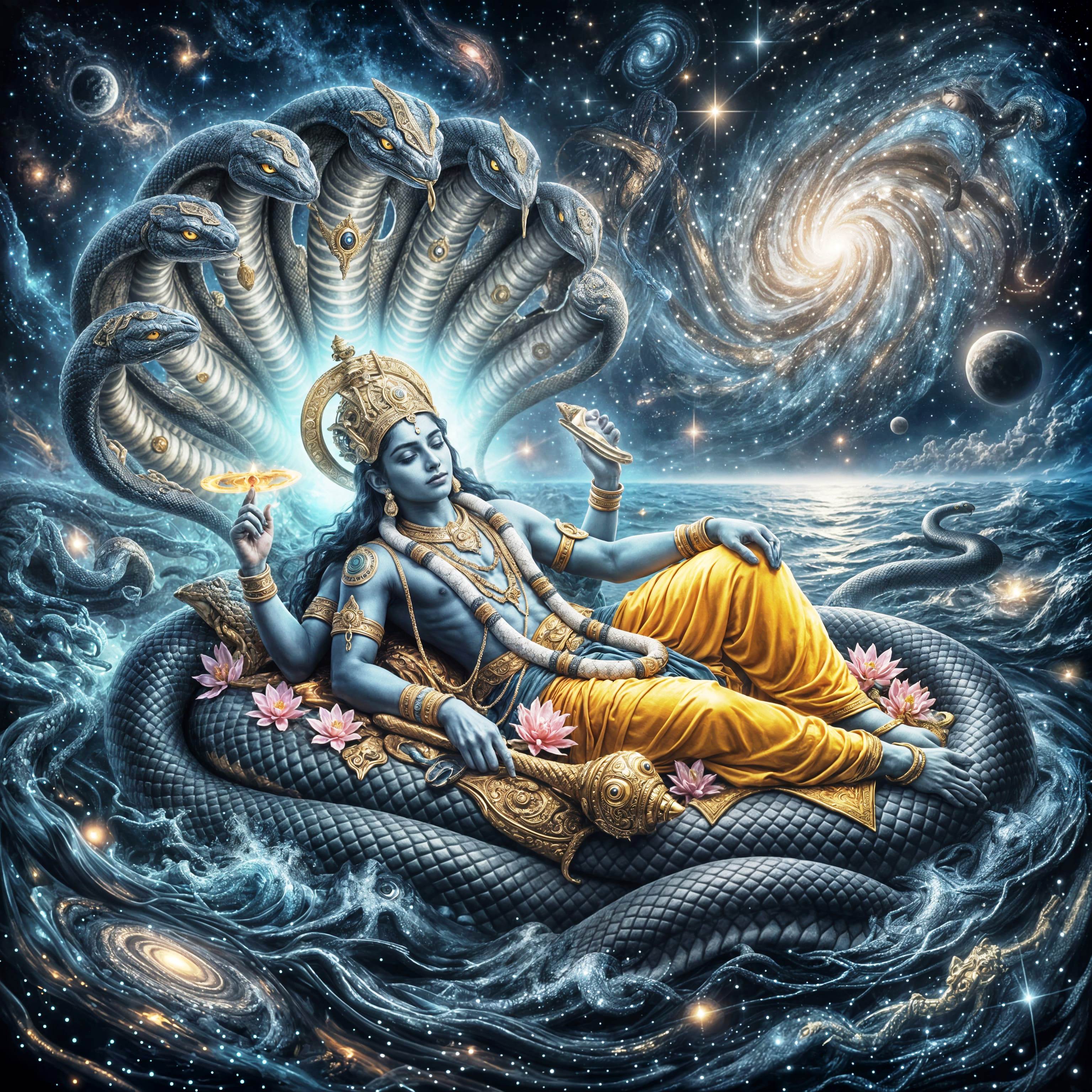 Thankfully, the civilisations of the Far East managed to avoid the brainwashing of the Roman Christian empire, and kept their serpents alive in folk memories. For instance, there is Ryūjin, the Japanese dragon sea god who lives in a coral mansion under the waves. The Indian god Vishnu sleeps on the coils of Sesha, his serpent, on the Garbhodaka Ocean, as he dreams the creation into existence. In Hinduism and Buddhism, nagas (snakes) remain revered even today as powerful spiritual guardians.